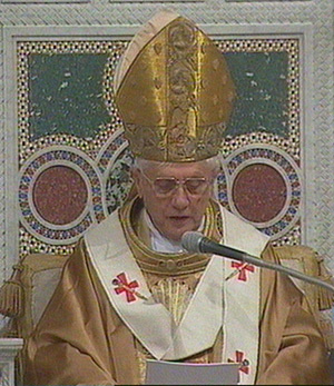 Die Kathedra ist – wir sagen es noch einmal – Symbol der Lehrvollmacht, die eine Macht des Gehorsams und Dienstes ist, damit das Wort Gottes – die Wahrheit! – unter uns erstrahlen und uns so den Weg des Lebens weisen kann. Aber wie könnten wir, wenn wir von der Kathedra des Bischofs von Rom reden, die Worte unerwähnt lassen, die der hl. Ignatius von Antiochien an die Römer schrieb? Von Antiochien, seinem ersten Sitz, steuerte Petrus Rom an, seinen endgültigen Sitz. Endgültig bekräftigt wurde dieser Sitz durch das Martyrium, mit dem er seine Nachfolger für immer an Rom gebunden hat. Ignatius, der Bischof von Antiochien blieb, wurde seinerseits in den Märtyrertod geführt, den er in Rom erleiden sollte. In seinem Brief an die Römer bezieht er sich auf die Kirche von Rom, »die den Vorsitz in der Liebe hat«, eine sehr bedeutsame Formulierung. Wir wissen nicht mit Sicherheit, was Ignatius mit der Verwendung dieser Worte im Sinn hatte. Aber für die alte Kirche war das Wort Liebe, »agape«, ein Hinweis auf das Geheimnis der Eucharistie. In diesem Mysterium wird die Liebe Christi immer mitten unter uns greifbar. Hier gibt er sich immer wieder hin. Hier läßt er sein Herz immer wieder durchbohren; hier hält er seine Verheißung aufrecht, die Verheißung, daß er vom Kreuz her alles an sich ziehen wird. In der Eucharistie erlernen wir selber die Liebe Christi. Dank dieser Herzensmitte, dank der Eucharistie haben die Heiligen gelebt, als sie die Liebe Gottes in immer neuen Formen in die Welt trugen. Dank der Eucharistie wird die Kirche immer wieder neu geboren! Die Kirche ist nichts anderes als jenes Netz – die eucharistische Gemeinschaft! –, in dem wir alle, wenn wir denselben Herrn empfangen, zu einem einzigen Leib werden und die ganze Welt umfangen. Der Vorsitz in der Lehre und der Vorsitz in der Liebe müssen letzten Endes ein und dasselbe sein: Die ganze Lehre der Kirche führt schließlich zur Liebe. Und die Eucharistie als gegenwärtige Liebe Jesu Christi ist das Kriterium, an dem jede Lehre gemessen wird. An der Liebe hängen das ganze Gesetz und die Propheten, sagt der Herr (Mt 22,40). Die Liebe ist die Erfüllung des Gesetzes, schrieb der hl. Paulus an die Römer (Röm 13,10).