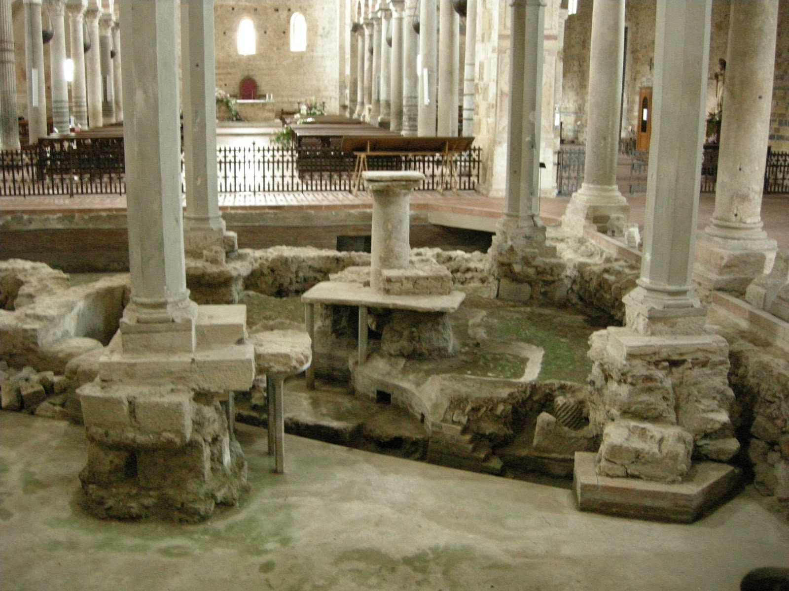 Im Altarraum befindet sich seit dem 14. Jahrhundert ein Ziborium über dem Altar. Bei den Ausgrabungen wurde entdeckt, daß sich das Ziborium genau über dem Altar der frühchristlichen und der langobardischen Kirche befindet.