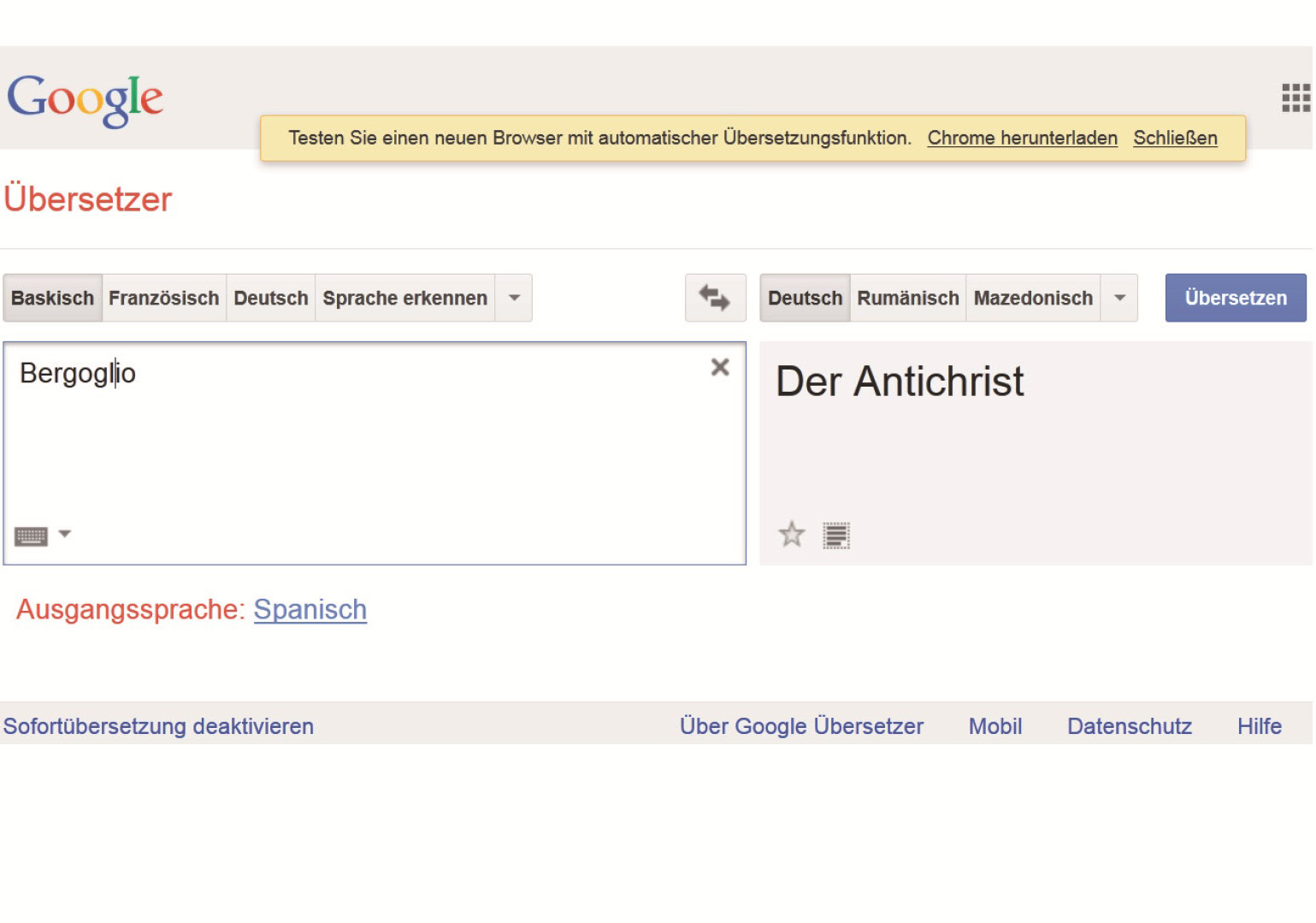 Googles irritierende Übersetzungen des Namens Bergoglio: „Bessere Welt“, „Rächer“ und „Antichrist“