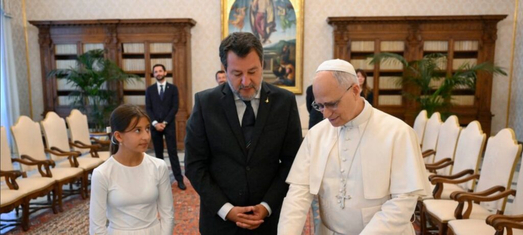 Am vergangenen Freitag, dem 29. August, war es soweit: Matteo Salvini, wie einst 2018/2019 stellvertretender Ministerpräsident Italiens und Vorsitzender der Lega, wurde von Papst Leo XIV. empfangen – mit offiziellem Fototermin. Begleitet wurde Salvini, bei einem Teil der Begegnung, von seiner 2012 geborenen Tochter Mirta.