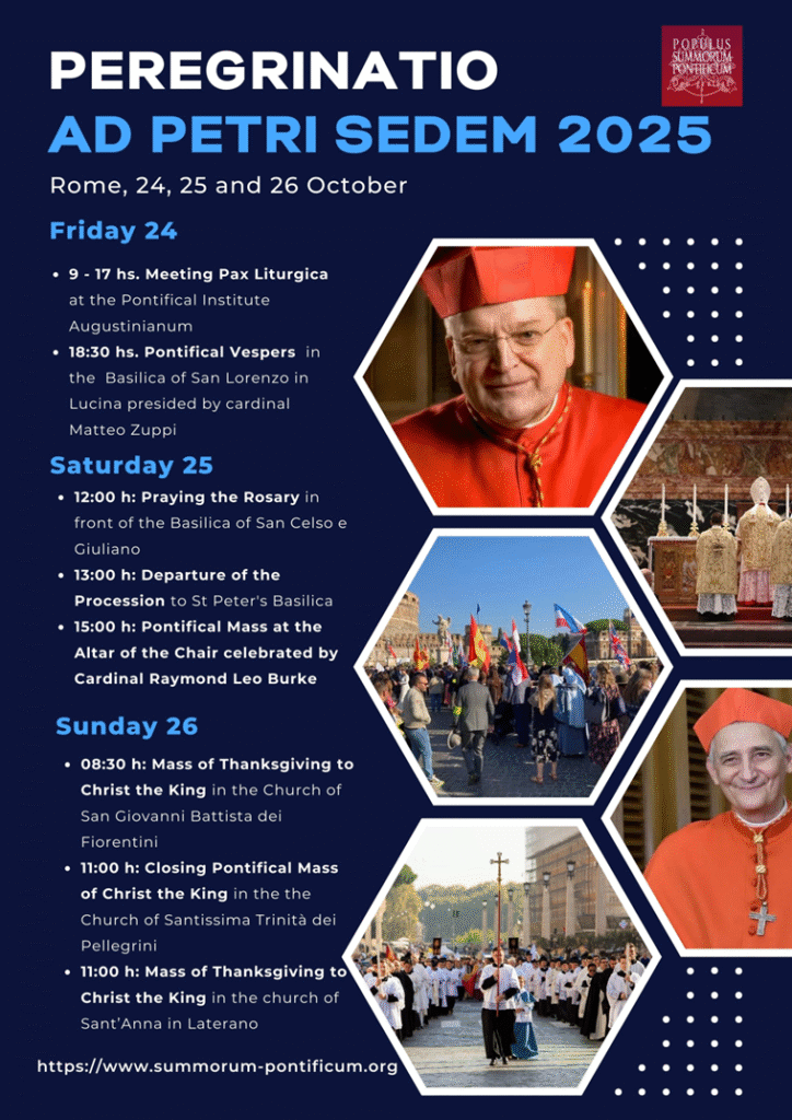 Diese Neuigkeit ist auf der offiziellen Internetseite der Wallfahrt (summorum-pontificum.org) noch gar nicht verzeichnet [inzwischen wurden die Angaben veröffentlicht]. Dort finden sich jedoch alle anderen Informationen zur Wallfahrt und auch zum 10. Meeting Pax Liturgica, jener Tagung, die wie schon in den vergangenen Jahren im Vorfeld, bemerkenswerterweise im Augustinianum des Augustinerordens stattfinden wird, dem Papst Leo XIV. bis zu seiner Wahl angehörte.