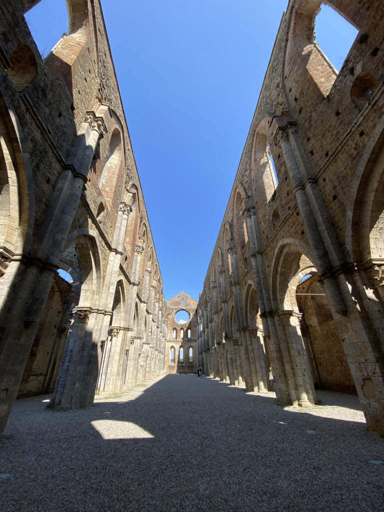 Die Ruinen der Abtei sind noch heute ein beeindruckendes Zeugnis einer glanzvollen Vergangenheit: Hohe Gewölbe, massive Mauern und der weite Blick in die Landschaft zeugen von der einstigen Größe des religiösen Zentrums. Im Gegensatz dazu ist die Rotonda di Montesiepi bis heute gut erhalten, und besonders die Kuppel mit ihre kreisförmigen Bemalung gilt als herausragendes Beispiel mittelalterlicher Sakralkunst.