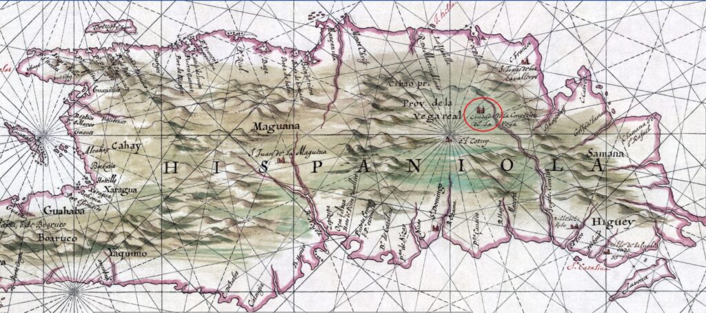 Die Festung und die aufgegebene Stadt Concepción de La Vega (La Vega Vieja) lagen rund acht Kilometer nördlich der heutigen Kathedrale der neuen Stadt La Vega.
