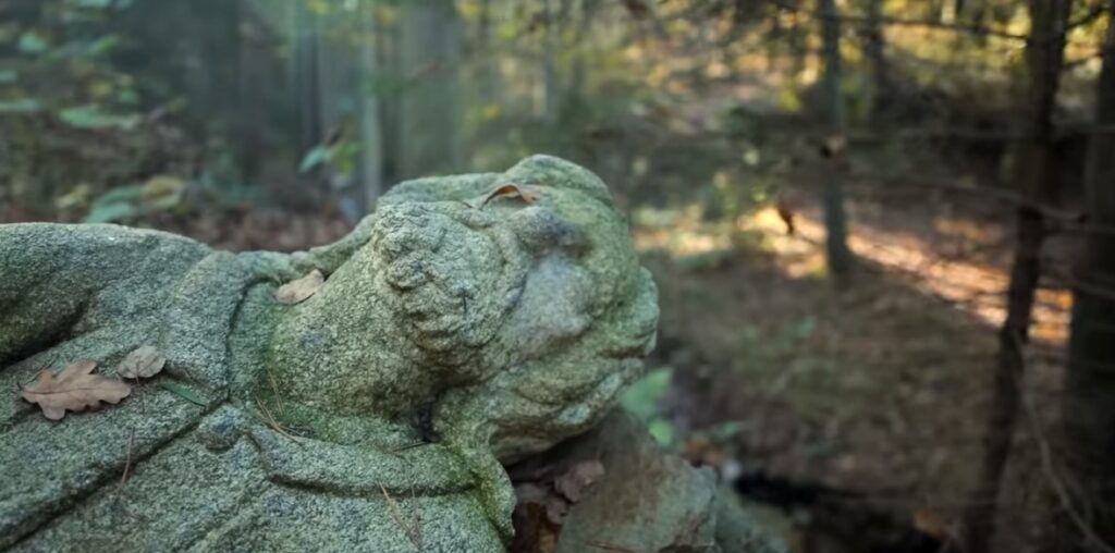 Stein­fi­gu­ren als Teil des Řimau­er Pas­si­ons­we­ges: im Bild die schla­fen­den Jün­ger im Gar­ten von Gethsemani